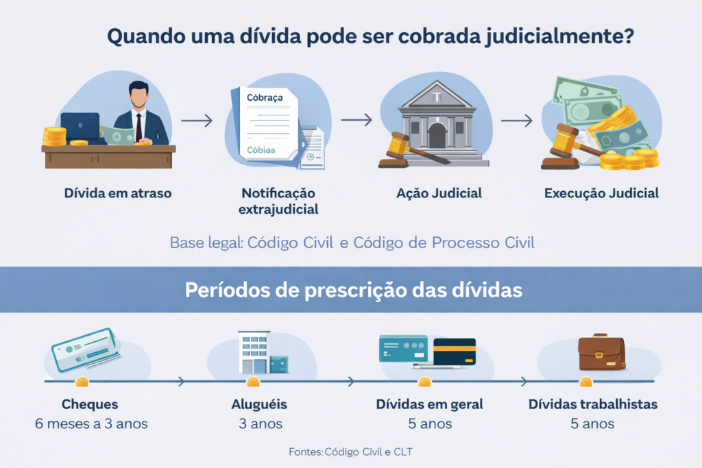 A cobrança de dívidas é um tema relevante tanto para consumidores quanto para empresas, mas muitas pessoas não sabem exatamente quando uma dívida pode ser cobrada judicialmente. Essa dúvida envolve prazos de prescrição, validade do contrato, direitos do credor e do devedor, além das etapas legais que antecedem uma ação judicial. Conhecer essas regras é essencial para evitar conflitos e prejuízos financeiros. Este guia detalha todos os aspectos legais e práticos, incluindo referências à legislação vigente, para que você saiba exatamente em que momento a cobrança pode ser formalizada judicialmente.